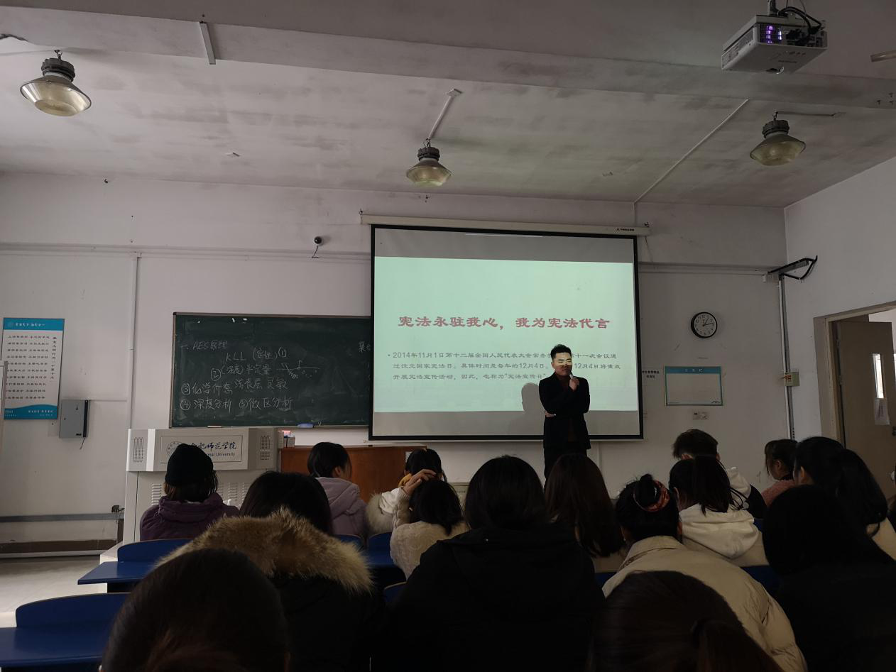 本网讯 为深入学习宣传习近平法治思想,大力弘扬法治精神,生命科学学院紧抓“宪法宣传周”活动契机,积极响应《安徽省教育厅关于开展2020年教育系统“宪法宣传周”系列活动的通知》文件精神,于12月4日针对2018级全体同学开展了一次以“宪法永驻我心,我为宪法代言”为主题的宣传教育活动,活动由2018级辅导员杨帆主持。