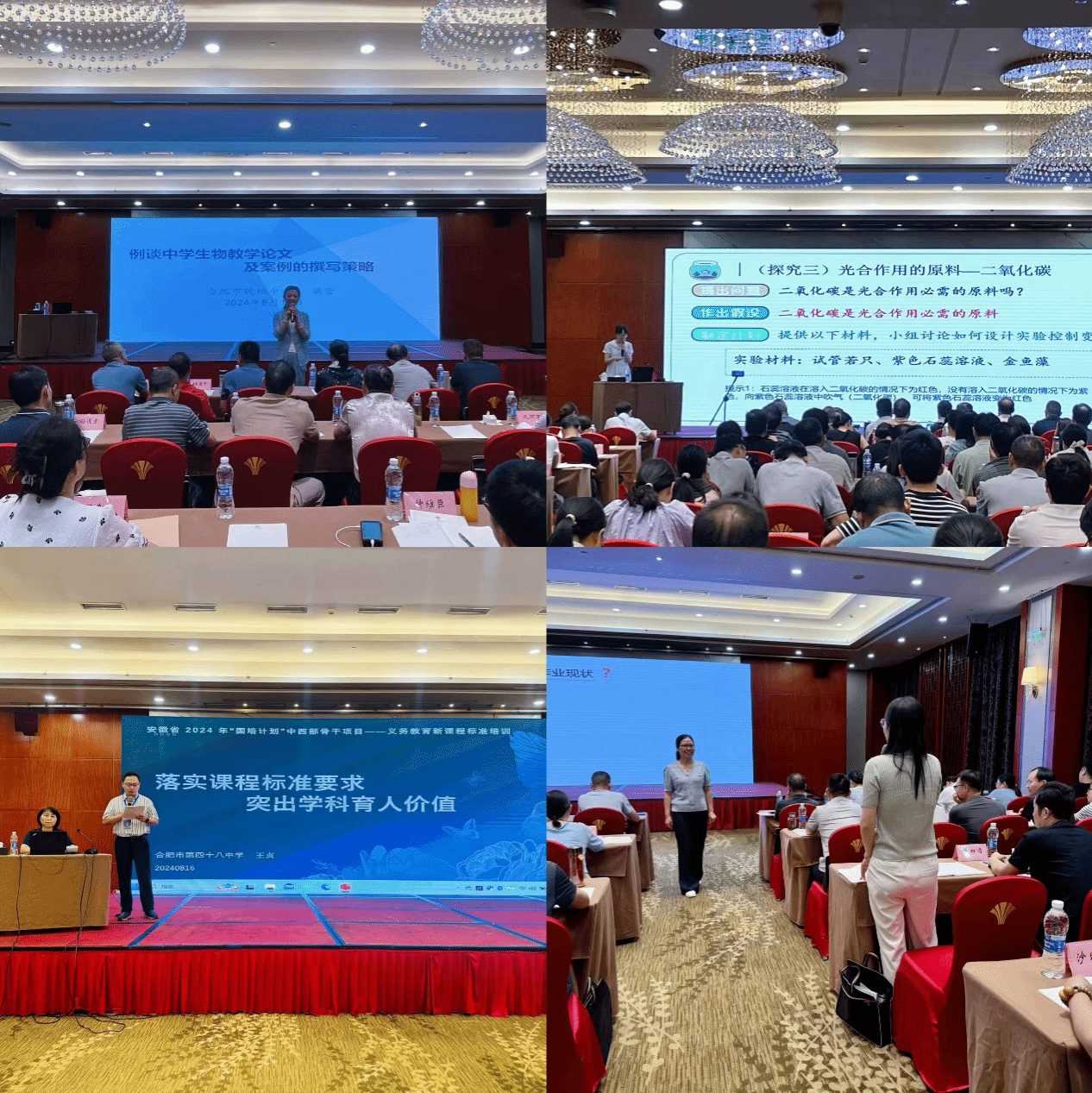 8月14—18日,由太阳成tyc234cc承办的安徽省2024年“国培计划”中西部骨干项目——义务教育新课程标准培训生物学培训班在合肥世纪金源大酒店圆满结束。来自合肥市、芜湖市、蚌埠市等16个地市75个县(区)农村中学生物骨干教师共200位学员参加了本次培训。