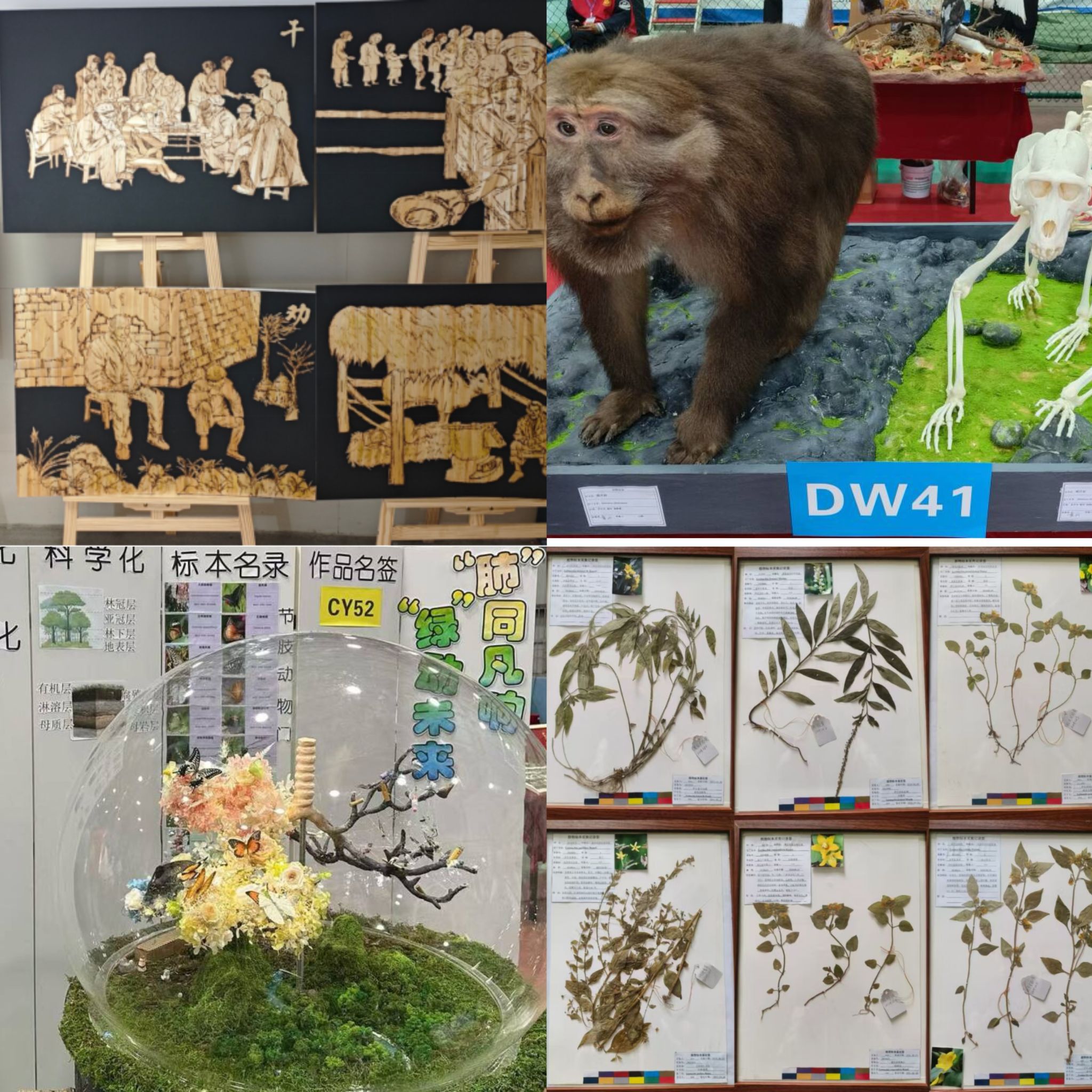 通过标本展示和答辩环节,我校张启信、陶瑞松老师指导,黄玲玲、顾继瑞等同学的作品《藏酋猴的剥制与骨骼标本》荣获动物组一等奖;王玲玲、陈延松老师指导,袁如意、王怡然等同学的作品《四种秤锤树属植物标本》荣获植物组一等奖;王占军、周璐璐、陆伟老师指导,侯铸珍、曹颖等同学的作品《一纸契约》荣获创意组一等奖。欧祖兰老师指导的《樟科山胡椒属几个种的区分》和王晶晶老师指导的《“肺”同凡响,“绿”动未来》荣获二等奖,陶瑞松、耿明老师指导的《实验动物标本展示》、杨星星、陈延松老师指导的《珍珠菜属植物标本》以及陈亚军老师指导的《药韵龙翔》荣获三等奖。