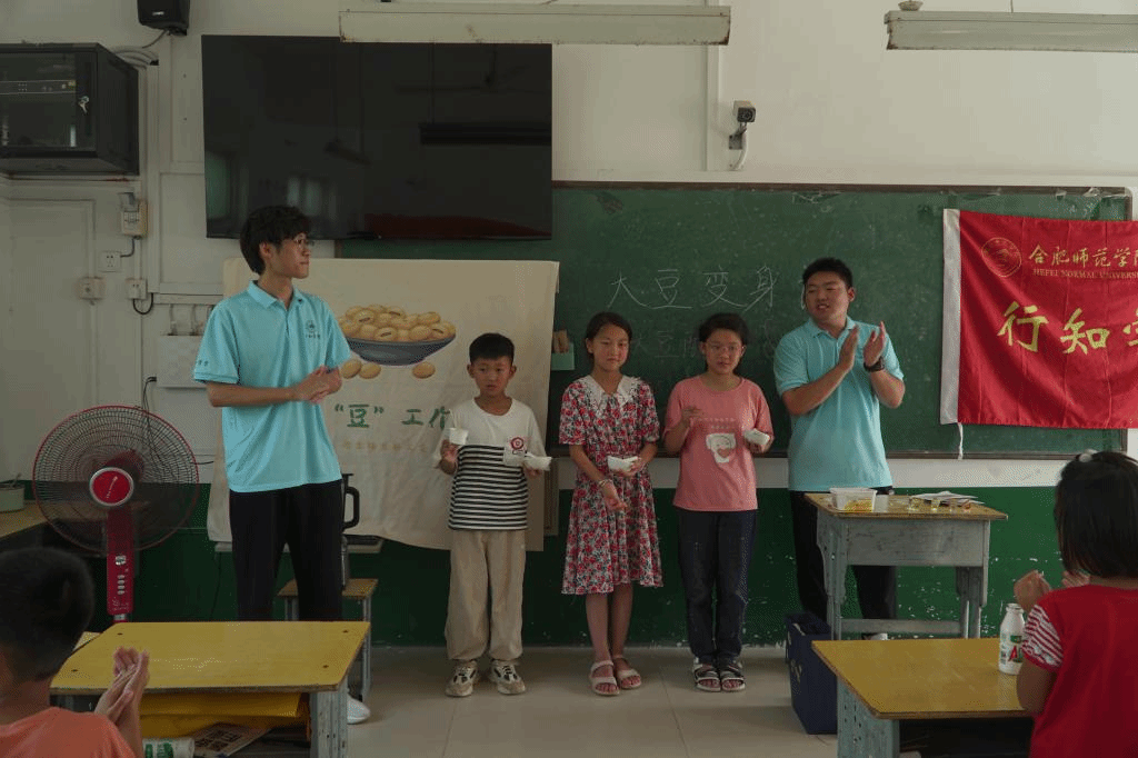 本次社会实践活动分为助农和助学两个方向。助农主要围绕前期调研、实地调研以及与乡政府合作三个方面展开。助学是以颍东区口孜镇王庄村行知学堂为依托,给当地留守儿童带来了包括“‘大豆变身记’——植物基酸奶科普小课堂”、“大豆磨磨乐”、‘酵‘醒’大豆一日游”、“比比谁的拉丝长”等四项特色活动。