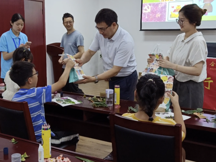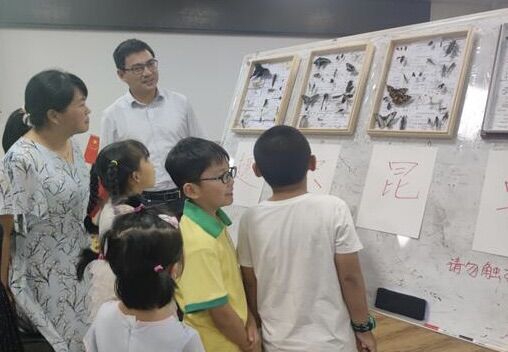 在学堂开课前,周端明带领小学员们欣赏小先生带去的动物标本,教小学员们认识昆虫。接着,周端明一行饶有兴致地观摩了小先生的课堂教学,小先生们结合自己的专业特色带领小学员们制作植物标本,在制作过程中,周端明一行与小学员们热情互动,观看小学员的作品,对小学员们的创新思维给予高度赞扬,并为小学员们发放了文具礼品,鼓励小学员们好好学习,天天向上,小学员们开心表达谢意。