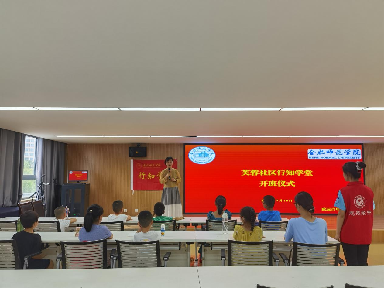 本网讯 弘扬行知文化,践行行知精神,绽放青春风采。7月10日,太阳成城集团tyc234cc牵头举办的芙蓉社区行知学堂在合肥市蜀山区芙蓉社区党群服务中心正式开班。学堂指导教师王玲玲、8名“小先生”、全体小学员及家长共同参加开班仪式。