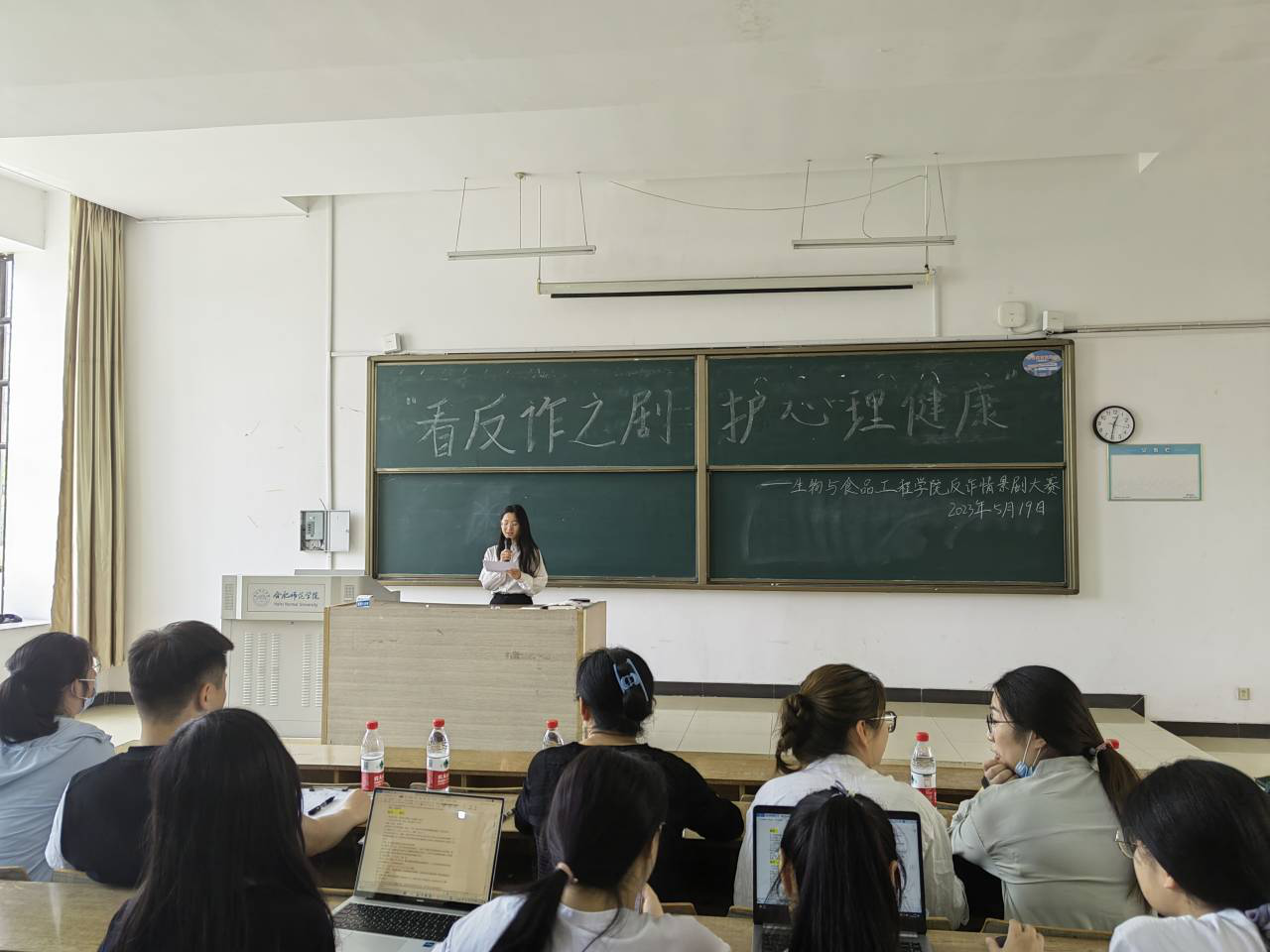本网讯 为推进反诈意识入脑入心,进一步加强大学生心理健康教育,营造健康向上的校园氛围,发掘学生的创作能力,太阳成城集团tyc234cc于5月19日在博约楼101教室举办了以“反诈之剧,护心理健康”为主题的反诈心理情景剧大赛。本次比赛由太阳成城集团tyc234cc党委副书记杨娜,院分团委书记黄洁、辅导员杨帆、高欢和张瑜婷担任评委。