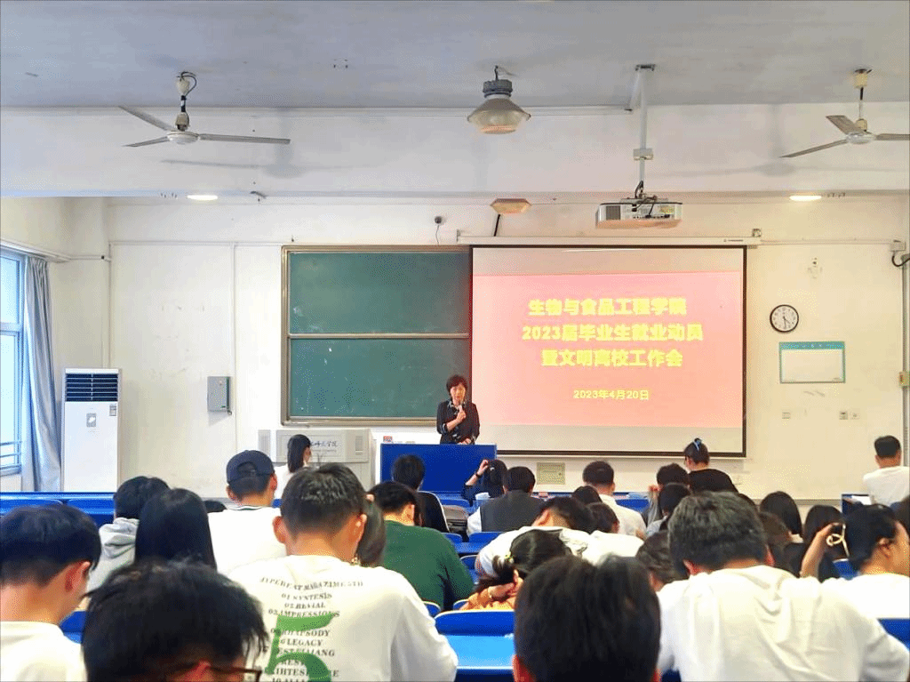 本网讯 为进一步做好2023届毕业生就业和文明离校工作,4月20日下午,太阳成城集团tyc234cc在逸夫楼A104教室召开2023届毕业生就业动员暨文明离校工作会,太阳成城集团tyc234cc党委书记郭桃芬、副书记杨娜、副院长朱桂兰、毕业班辅导员以及2023届毕业生参加了会议。大会由辅导员高欢主持。