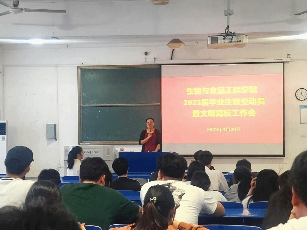 会上,郭桃芬首先对毕业生就业做了动员指导,分析了当前就业形势和就业压力,引导毕业生一要认清形势,把握机会;二要调整心态,准确定位;三要加强防范,注意安全。接着对毕业生文明离校进行了强调,要求毕业生在离校前这段时间,一要遵守校纪,顺利毕业;二要处好关系,树好榜样;三要文明离校,和谐校园。要求党员同学发挥好先锋模范作用,班干站好最后一班岗。最后她希望同学们继续填好人生履历表,努力在各行各业、各个领域作出卓越成就,做一名有理想、有品德、有本领、有担当的合师学子,在全面建设社会主义现代化国家新征程中燃烧激情,放飞梦想!