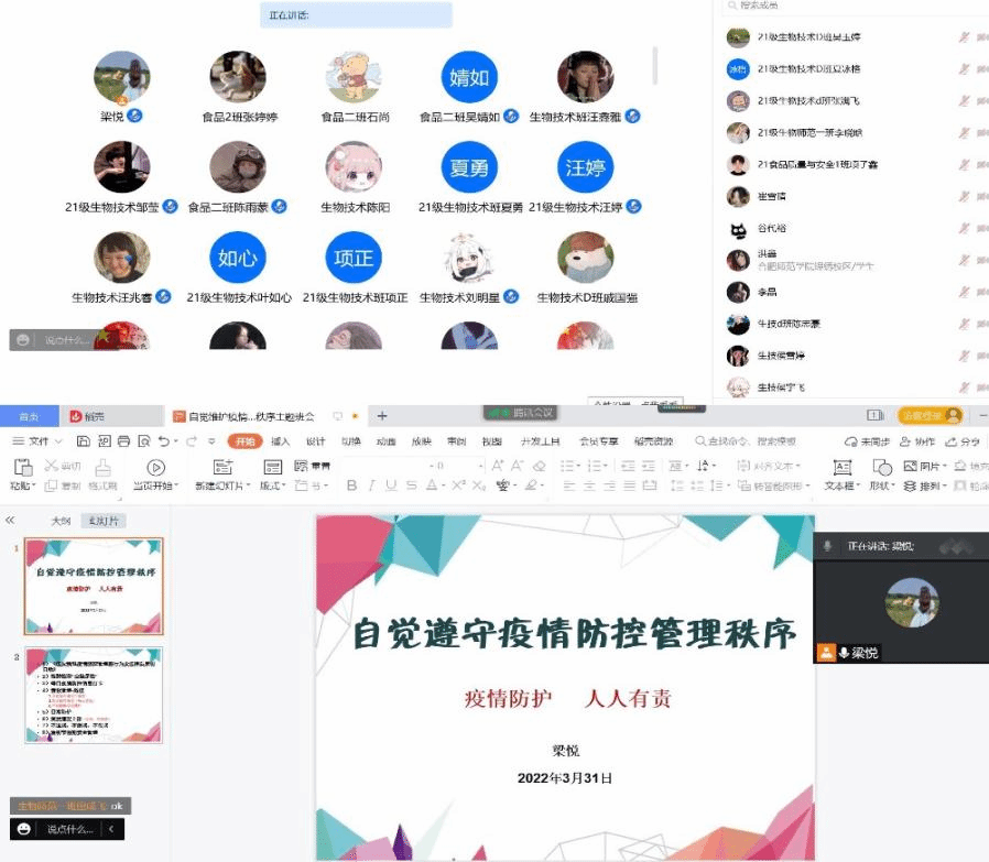为加强学生对疫情防控措施的理解和支持,从严从紧落实防控政策,生命科学学院辅导员通过线上线下相结合分别召开疫情防控主题班会、学生干部会议,讲好疫情防控“思政大课”。