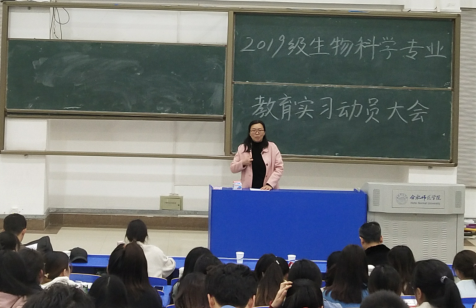 本网讯 生命科学学院于3月4日,在锦绣校区逸夫楼西阶二召开2019级教育实习动员大会。动员会由实践部主任张雁老师主持,生命科学学院院长徐忠东、党委副书记杨娜、生物科学系主任孙娴、专业指导教师、毕业班辅导员以及2019级生物科学专业全体学生参加了本次会议。