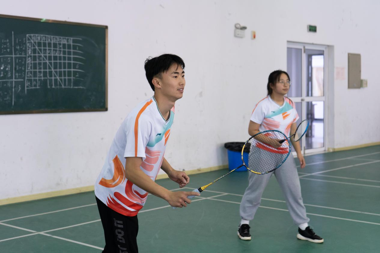 经过初赛的选拔,16组师生队伍进入决赛。其中教师队伍8支,学生队伍8支。赛程分别为16进8、8进4以及冠亚季军争夺赛。第一轮比赛,教师组和学生组分别抽签两两进行比赛。“推,扑,杀,吊”一个个精彩的回球为在场观众带来视觉与心灵的冲击。选手们目光紧锁空中飞舞的羽毛球、竭尽所能与对手进行较量,充分发扬了勇于拼搏、不断进取的竞技精神。