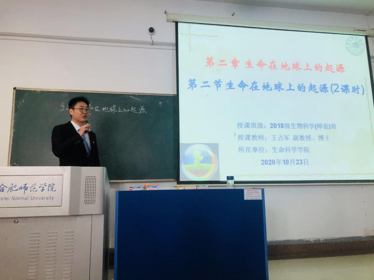 王占军讲授了《生物进化论》课程中“生命在地球上的起源”章节内容;他以“致敬中国人民志愿军抗美援朝70周年”的图片和“抗击新冠疫情英勇献身的英雄事迹”的视频为案例进行导入,拓展出“生命的意义”;随后,他主要讲解了“人类对生命起源的几种认识”和“生命起源的环境条件”两部分内容。课上各教学环节紧密相扣,精心设计了立德树人的课程思政教学环节;王占军在授课过程中,注重“以生为本”,有效组织学生积极参与课堂互动,活跃了课堂气氛,获得听课教师的一致好评。