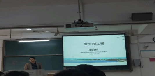 中科院合肥物质科学研究院的宋文成副研究员承担《微生物工程》一课。宋老师从环境污染角度出发,向大家介绍了当前利用微生物菌体作为吸附剂,对放射性核素进行吸附,进而消除环境中放射性物质污染的研究现状,从而启发同学们认识微生物在工业生产及人民生活中的重要意义。