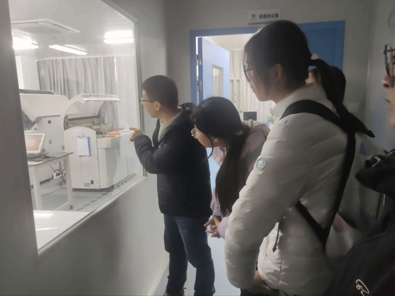 企业负责人向同学们介绍了公司的发展历程、核心业务、市场布局以及未来规划,使同学们对生物医药企业的运作模式和前沿技术有了直观的了解。同学们在企业工作人员的带领下有序参观了公司的实验室,同学们近距离观察了先进的实验设备和生产线,感受到科技创新在生物制药领域的实际应用。