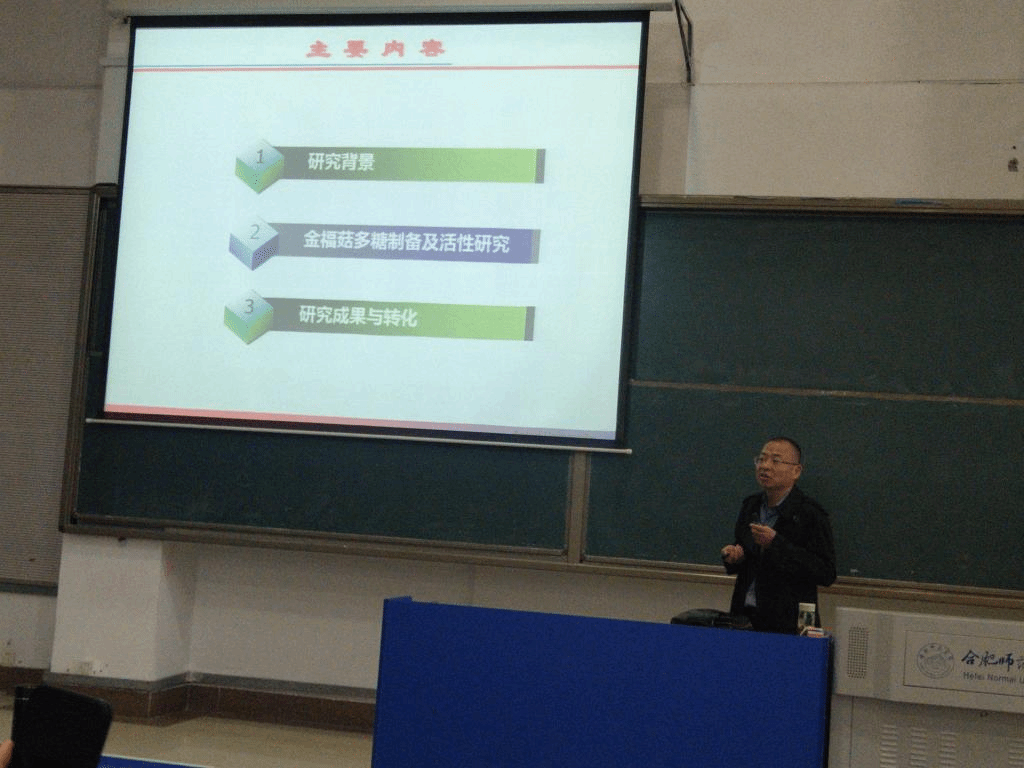本网讯 11月18日下午,应生命科学学院邀请,安徽大学教授、博士生导师陈彦在逸夫楼西阶二教室,为生科院师生作了题为《金福菇多糖的高效制备与应用》的学术报告,生科院师生齐聚一堂聆听了报告,报告由生命科学学院院长徐忠东教授主持。