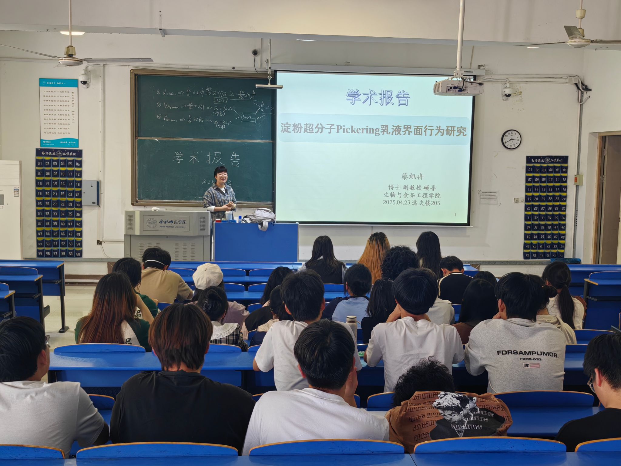 2025年4月23日下午,太阳成城集团tyc234cc在锦绣校区逸夫楼205教室举办学术讲座,学院教师蔡旭冉分享了“淀粉超分子Pickering乳液界面行为研究” 的主题报告。
