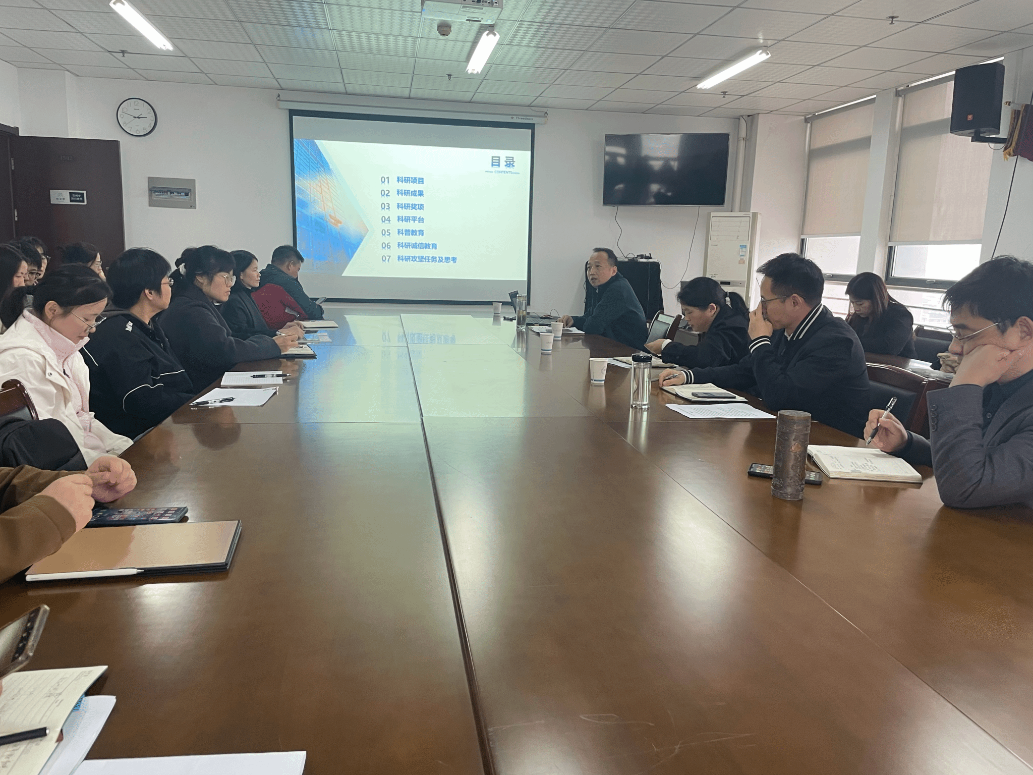 首先,胡兵从师资队伍建设角度,阐述了科研工作与教师职称评审、绩效考核的紧密联系,特别强调科研诚信教育是教师职业发展的底线要求,需时刻恪守科研伦理。同时,双方还就科研平台的资源整合利用、科普教育的开展形式以及科研攻坚任务的破题思路等内容,与参会教师展开深入交流。