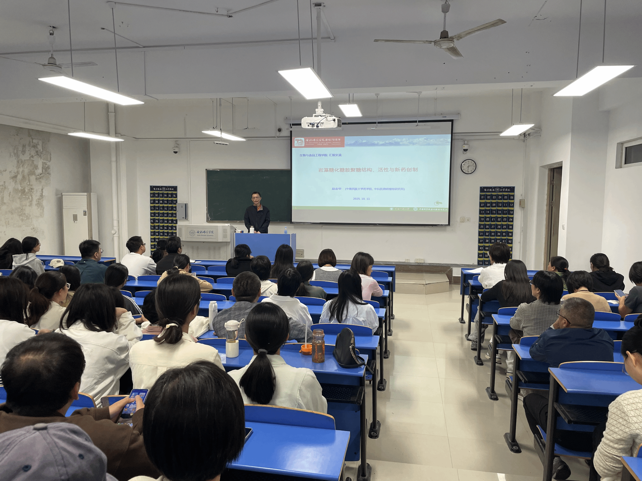 整场报告逻辑清晰、内容详实,赵金华用专业且易懂的语言,将复杂的学术知识传递给在场师生。教师们结合自身教学与科研工作积极思考,2023级生物制药专业学生也认真记录、踊跃汲取前沿学术养分。此次报告不仅为师生搭建了学习交流的平台,助力大家了解天然产物糖化学与创新药物研发领域的最新动态,也进一步加强了校友与母校的联系,为学院学科发展与人才培养注入新动力。(太阳成城集团tyc234cc:蔡旭冉)