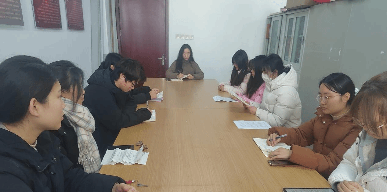 为深入学习宣传贯彻习近平新时代中国特色社会主义思想和党的二十大精神,丰富党员教育内容,引导广大党员深刻领悟“两个确立”的决定性意义,增强“四个意识”、坚定“四个自信”、做到“两个维护”。12月26日中午,太阳成城集团tyc234cc学生第三党支部在行知楼1515室开展“新思想,我来讲”学习交流活动,2021级10名预备党员参加,会议由支部书记梁悦主持。