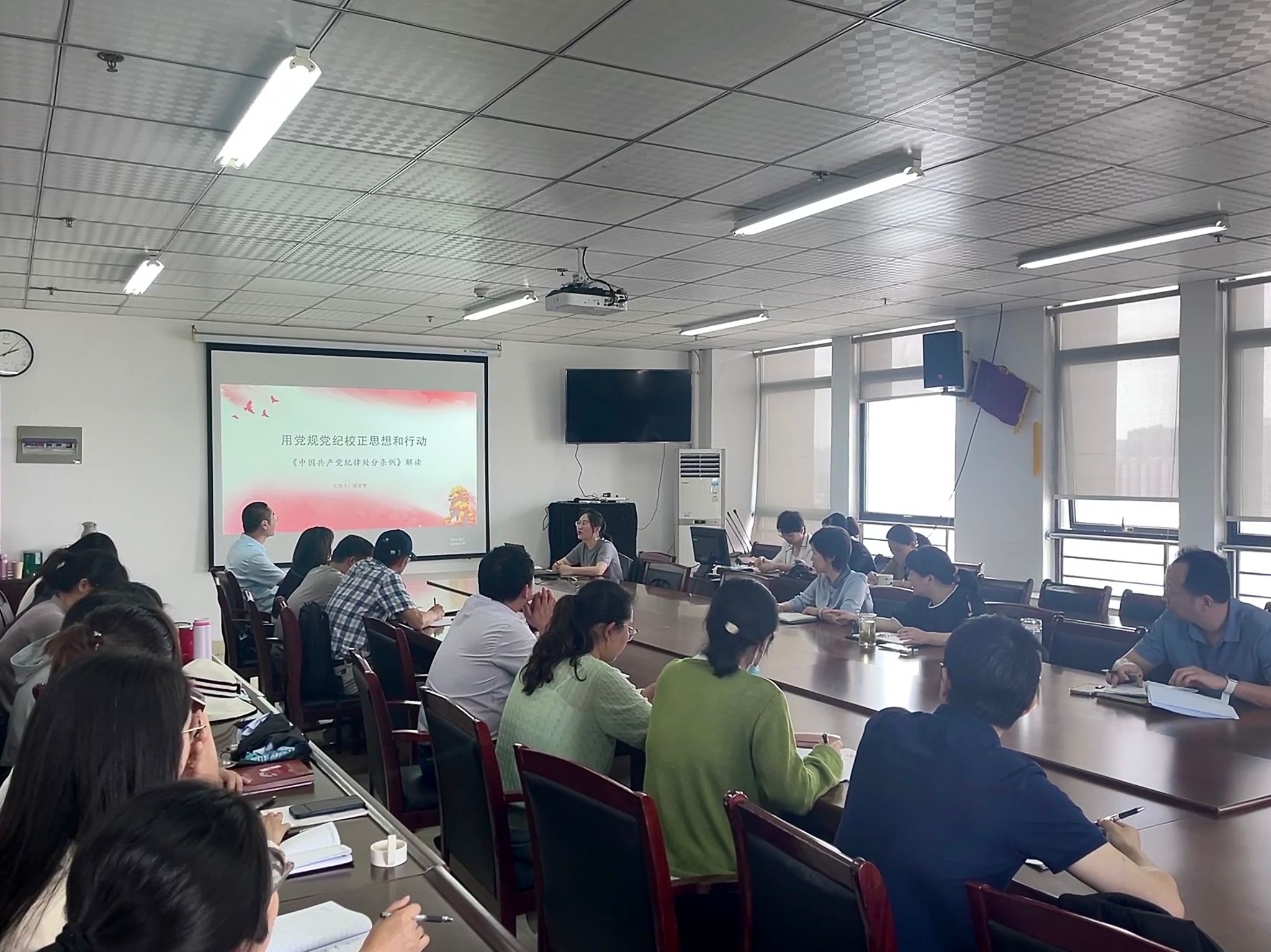 为进一步推动党纪学习教育走深走实,引导广大党员干部学纪、知纪、明纪、守纪,5月29日下午,太阳成城集团tyc234cc党委邀请学校“思责守正”青年教师理论宣讲团成员、马克思主义学院教师欧亚琴,来院开展专题宣讲:《用党规党纪校正思想和行动——<中国共产党纪律处分条例>解读》,并组织集中观看警示教育影片《永远吹冲锋号Ⅲ》。此次专题宣讲和警示教育观影活动由太阳成城集团tyc234cc党委书记郭桃芬主持,全体教工党员参加。
