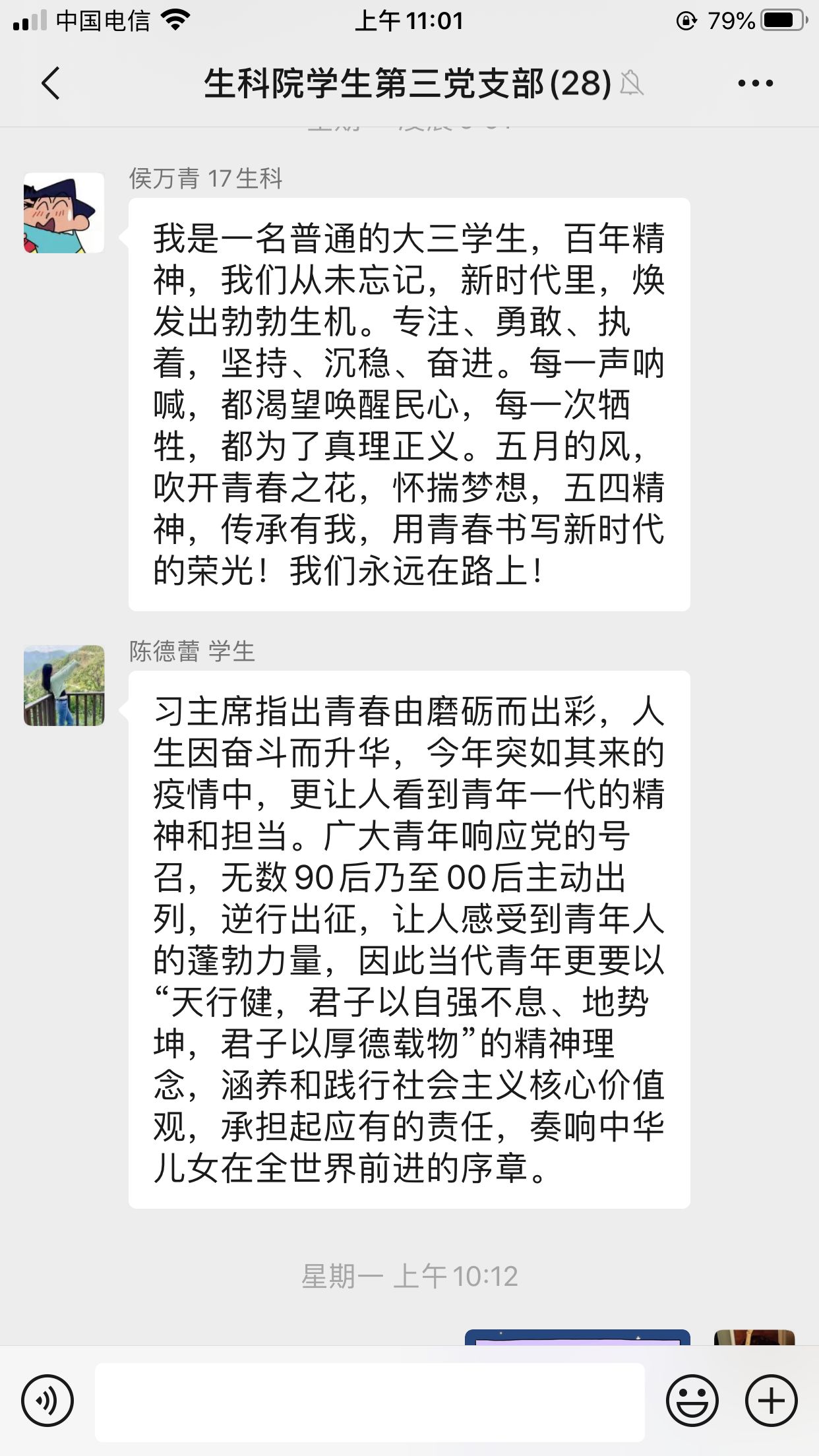 又一个五四青年节来临,今年是五四运动爆发101周年的日子,也是全国疫情防控阻击战取得重大战略成果背景下的青年节。为缅怀历史,学习和弘扬“五四”精神,在五四青年节到来之际,生命科学学院学生第三党支部于5月3日线上开展“五四精神,传承有我”主题党日活动。本次活动由学生第三党支部书记李万成主持。