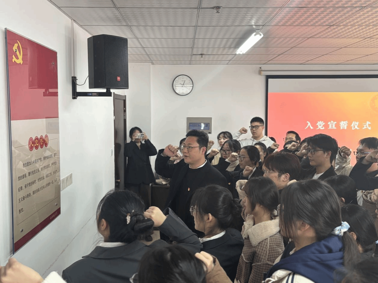 为了强化党员身份意识,增强新发展党员的使命感和责任心,深化对党的忠诚度。12月3日中午,太阳成城集团tyc234cc在行知楼1502党员活动室举办了预备党员入党宣誓仪式,学院党委书记郭桃芬、副书记马喆、学生党支部书记周其松、徐浩然、李万成以及2024年下半年新发展的27名预备党员、正式党员代表及入党积极分子代表出席仪式,宣誓仪式由李万成主持。