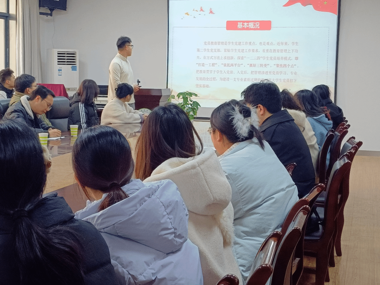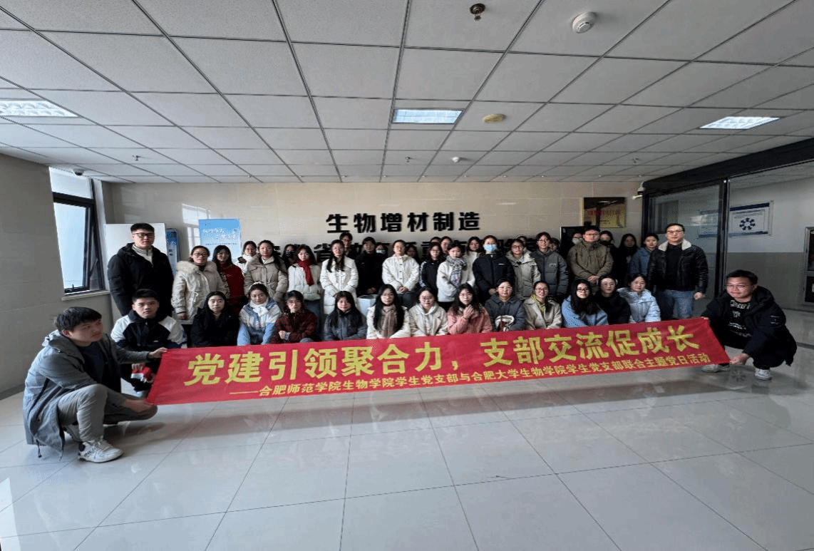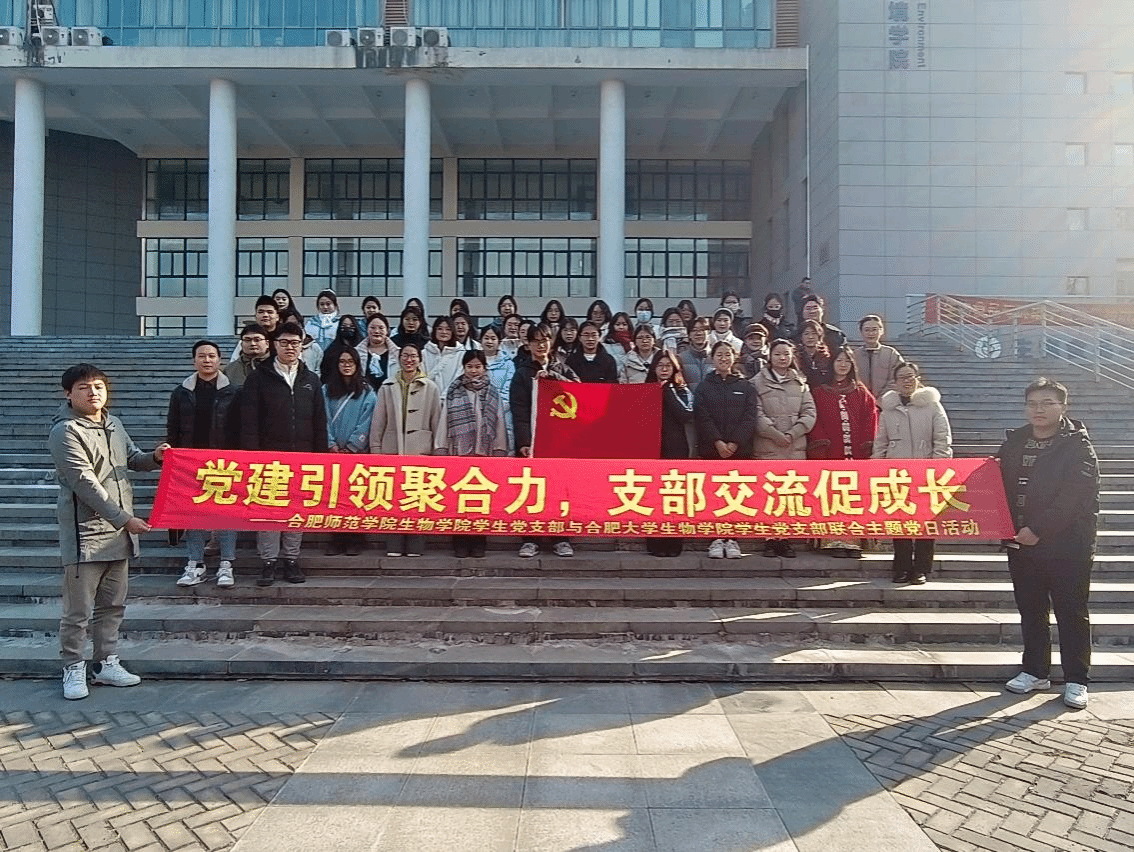 2024年12月31日上午,太阳成城集团tyc234cc学生党支部与合肥大学生物食品与环境学院学生党支部开展“党建引领聚合力,支部交流促成长”联合党建活动,学生第一党支部书记周其松、第二党支部书记徐浩然带领支部40余名党员参加此次活动。