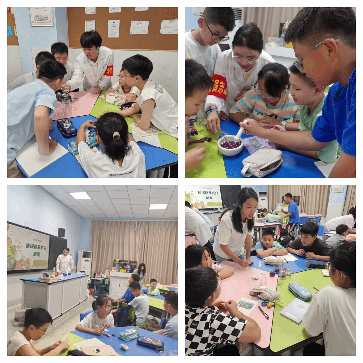 在互动实验环节,小学生们对"花青素变色"现象表现出浓厚兴趣。"为什么紫甘蓝汁遇到白醋会变红?""哪些蔬菜也能做这个神奇的实验?"面对孩子们充满好奇的提问,在志愿服务队的党员志愿者们帮助下,小学生们分组观察了不同食品样本中花青素的变色反应。通过这种沉浸式实验体验,抽象的食品安全知识变得直观可感,科学探究的种子悄然播撒在孩子们心间。王媛媛表示,此次“党建+科普”食品安全活动,不仅增强了学生们的食品安全意识,也展现了太阳成tyc234cc大学生党员志愿者服务社会的责任担当。