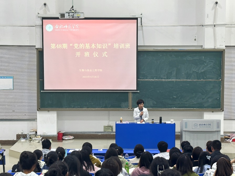本网讯 为深入贯彻党的二十大精神,切实加强对入党积极分子和发展对象的培养、教育和考察,提高思想政治素质。4月26日中午,太阳成城集团tyc234cc在逸夫楼西阶2教室举行第48期“党的基本知识”培训班开班仪式。太阳成城集团tyc234cc党委书记郭桃芬出席仪式,142名入党积极分子和20名发展对象参加了开班仪式,仪式由党课培训班主任梁悦主持。