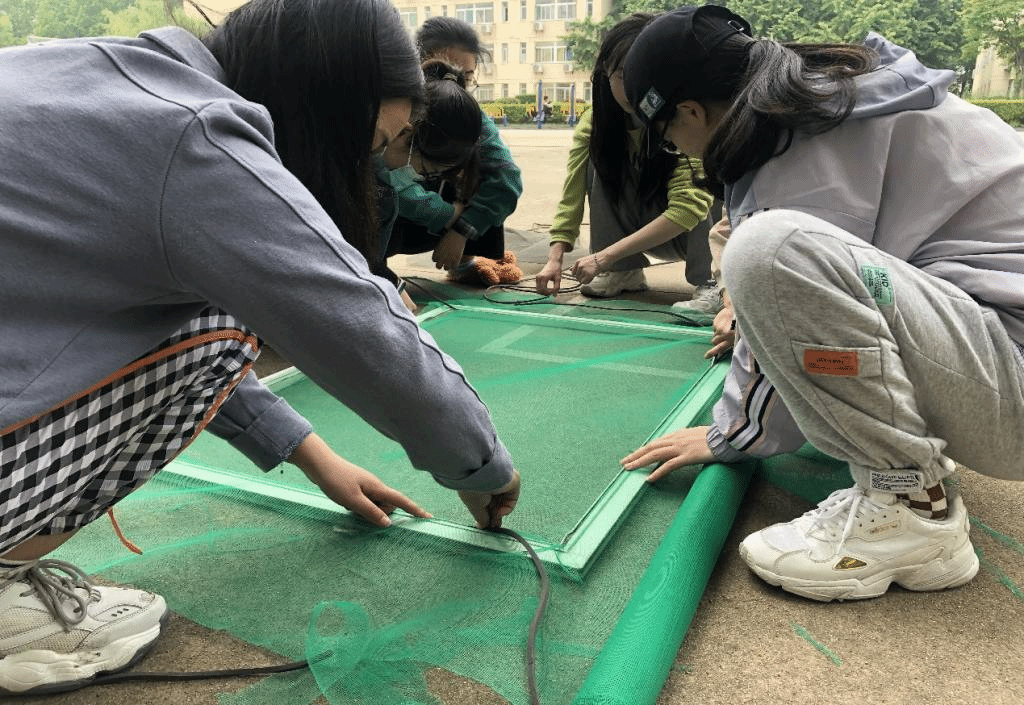 事前,各年级辅导员对纱窗破损寝室进行了统计,学院根据寝室数准备窗纱。5月1日上午,各寝室将破损的纱窗取下带到场地,排队等待更换。各支部党员和发展对象有序分工,按各班统计数据核实登记,拆卸旧窗纱、剪裁新窗纱、压条、整理。有的同志对更换窗纱技术并不熟练,但他们边学边干,积极主动,以饱满的热情投入到工作当中,最终,顺利完成了所有学生寝室破损窗纱的更换工作。