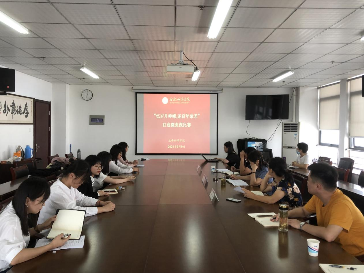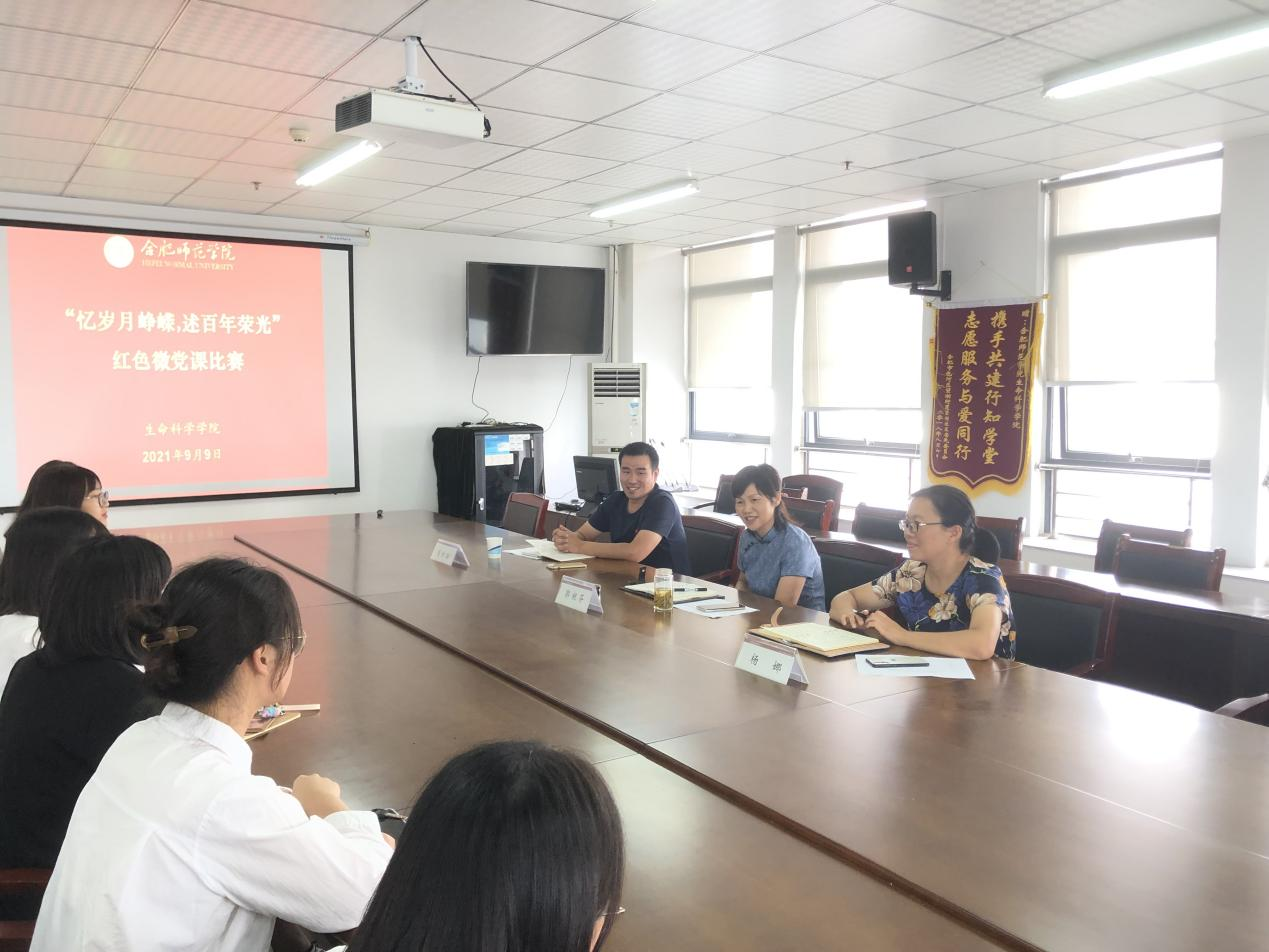 本网讯 为深入推进党史学习教育,全面落实《生命科学学院关于“十个一”红色做到“两个维护”方案》,教育引导师生党员深入了解党的光辉历史、感悟党的初心使命、领会党的创新理论、传承党的红色基因,9月9日中午,生命科学学院党委在行知楼1502举行“忆岁月峥嵘,述百年荣光”红色微党课比赛。本次比赛面向全体师生党员,师生党员同上一堂微党课。比赛由学院党委书记郭桃芬、副书记杨娜、校党委组织部组织科科长吴世红担任评委,由党政秘书黄文婷主持。