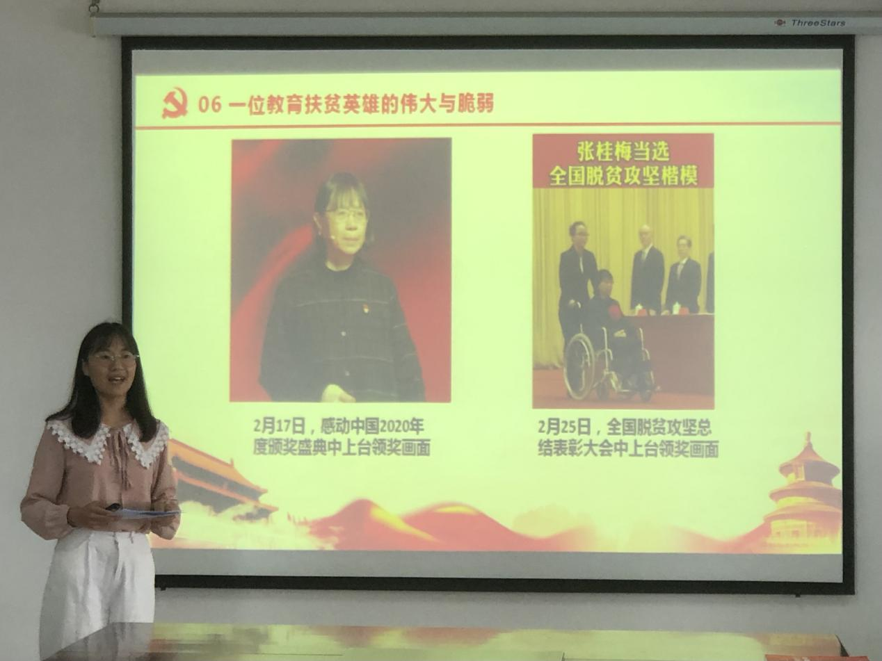 经过支部推荐,3名教师和6名学生共9名选手参赛。大家围绕党的创新理论成果、英雄楷模的先进事迹,结合抗洪抢险、疫情防控等社会实践,讲红色历史,讲家国情怀,讲社会发展,讲感悟体会。10分钟左右的时间里,选手们或激情澎湃,或娓娓道来,以小切口呈现大主题、小故事反映大变化、小视角折射大时代。一堂堂生动的微型党课,成为一场深刻的精神洗礼。