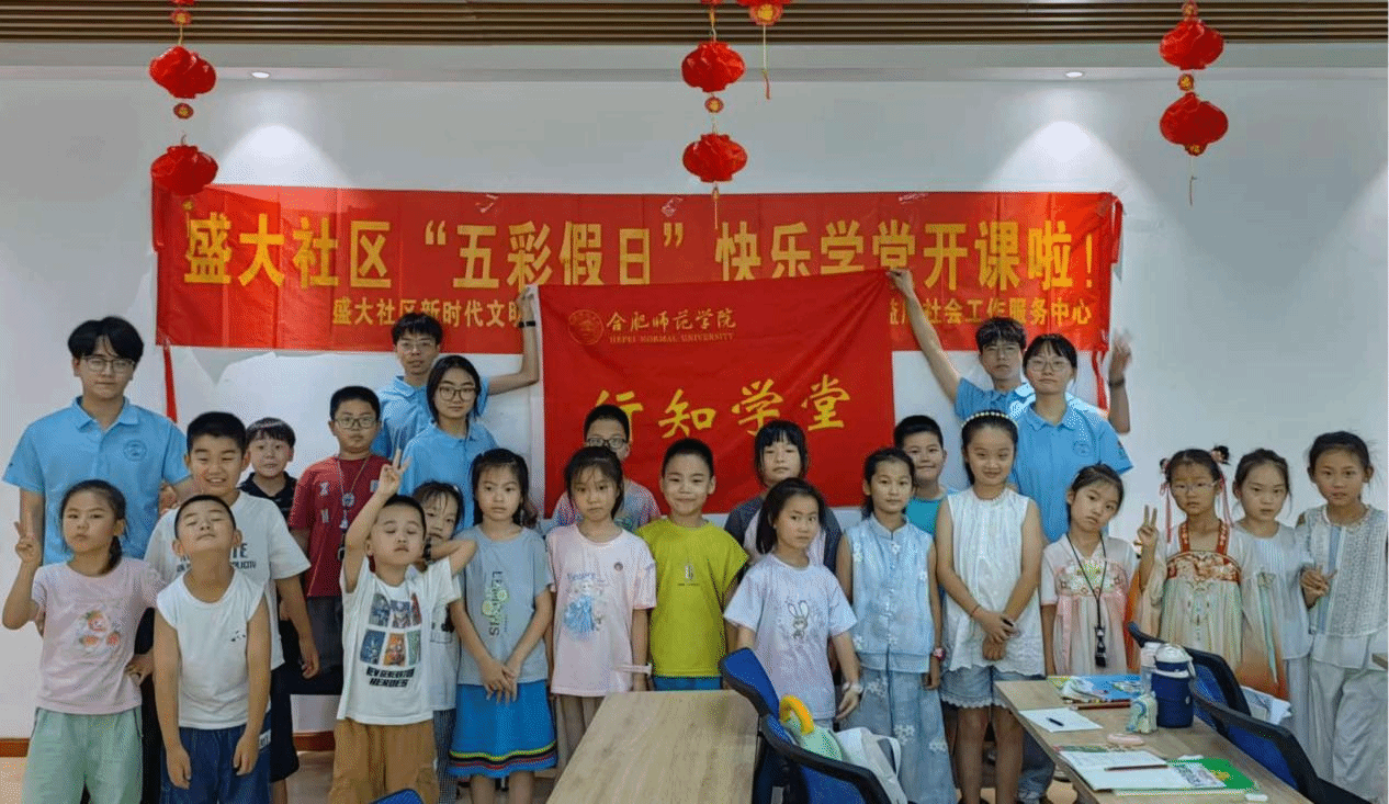 7月1日上午,太阳成城集团tyc234cc“盛大行知学堂”在合肥市望湖街道盛大社区银杏尚郡党群服务站三楼正式开班。本次活动由太阳成城集团tyc234cc、盛大社区妇联、银杏尚郡党群服务站和益欣社工站联合举办,共吸引辖区35名小学员报名参加。