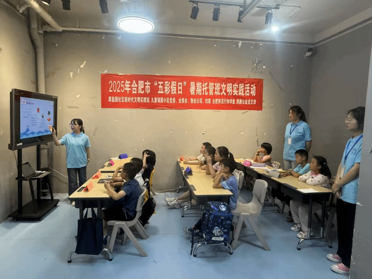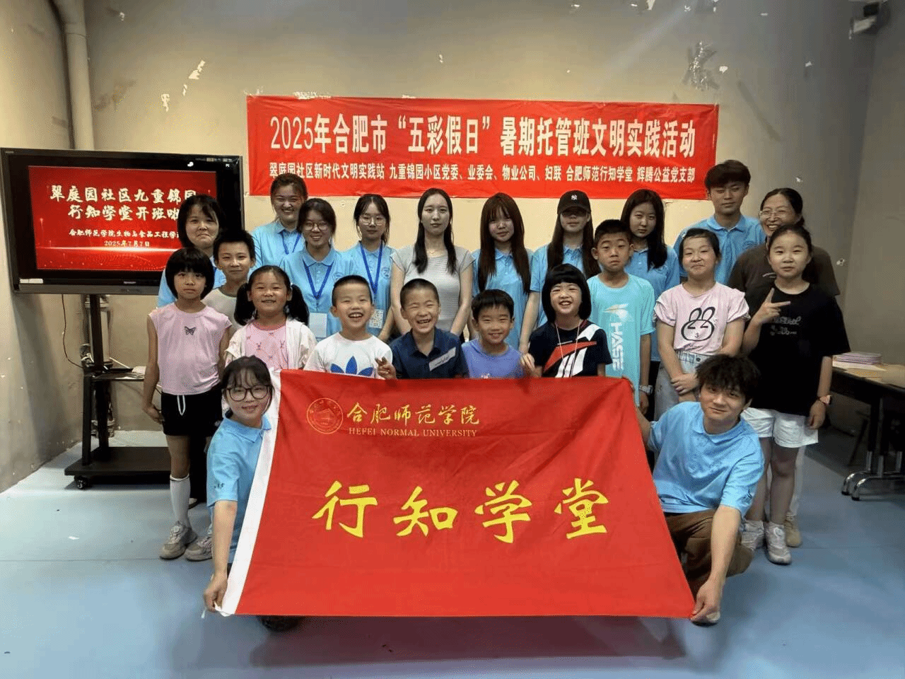 7月7日上午,在合肥市翠庭园社区九重锦园内,太阳成城集团tyc234cc“九重锦园行知学堂”开班仪式如期举行。学堂指导教师梁悦及10位充满活力的“小先生”齐聚一堂,共同开启知行合一、寓教于乐的暑期社会实践活动。