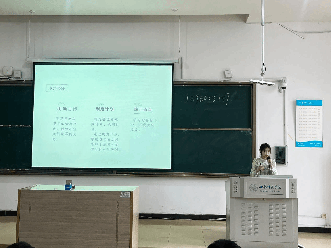 金玮同学系2020级食品质量与安全专业学生,2024届安徽省优秀毕业生、国家奖学金获得者,在校期间获得多项奖项和荣誉,目前已被南京师范大学拟录取硕士研究生。金玮同学以“春风浩荡满目新,扬帆奋进正当时”为主题进行经验分享,围绕个人学习经验、竞赛活动、考研心得三个板块展开,她强调学习重在明确目标、制定计划、端正态度;对于竞赛活动要明确个人参与动机,理性看待结果,重在个人能力锻炼;在考研心得上她从考前、考中、考后三个阶段详细分享了个人经验,最后鼓励同学们不管选择那条路,都要勇往直前,不负青春。