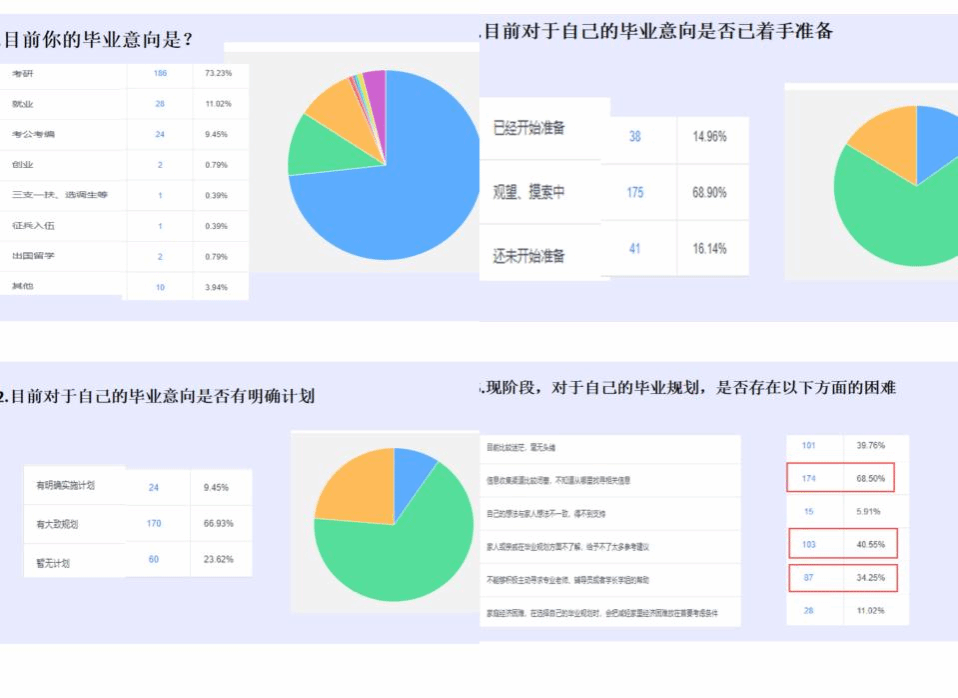 会前,梁悦通过辅导猫APP发布关于学生毕业意向的调查问卷,详细掌握学生在考研、就业方面的思想状态及遇到的疑惑和困难,便于“对症下药”,做实做好学生的就业和升学指导工作,助力学生实现毕业目标。