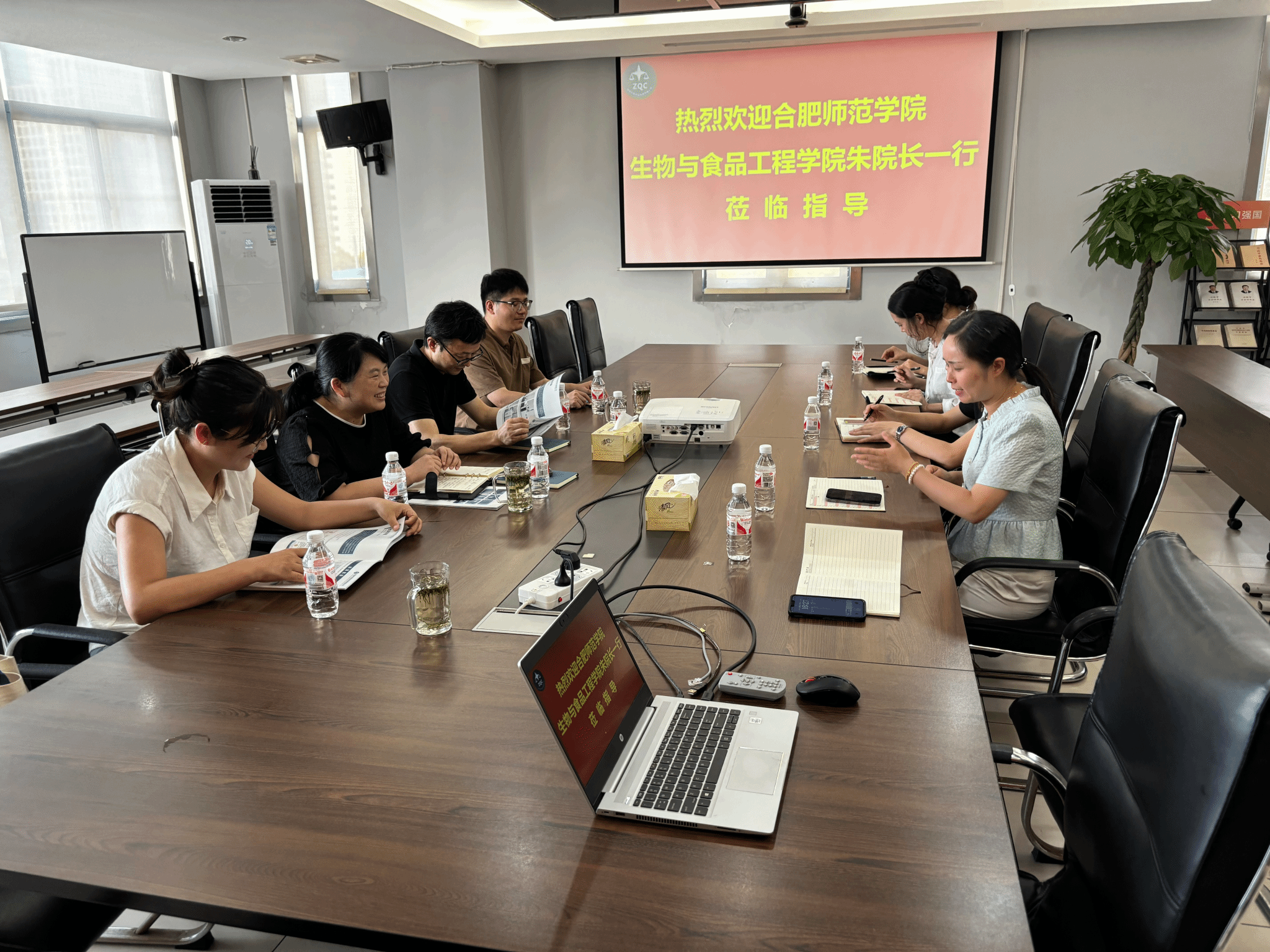 王媛媛对朱桂兰一行表示热烈欢迎,充分肯定了我院在应用型人才培养上所作的贡献,对长期以来为中青检测输送优秀人才表示感谢。希望后续双方在科技攻关、平台建设、学生培养和就业等方面开展更深入合作。