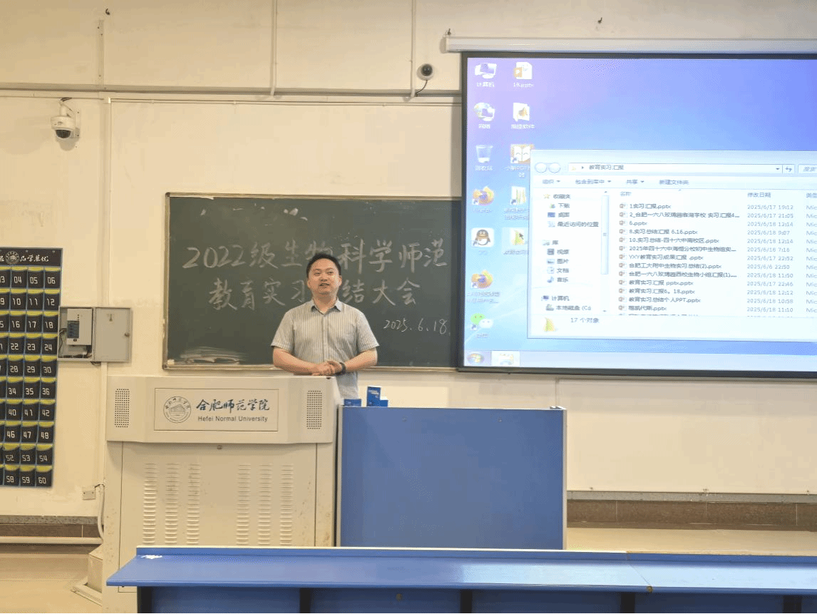 为全面总结教育实习成果,深化“教学做合一”的师范培养理念,太阳成城集团tyc234cc2022级生物科学专业教育实习总结大会于6月18日在逸夫楼A109举行。