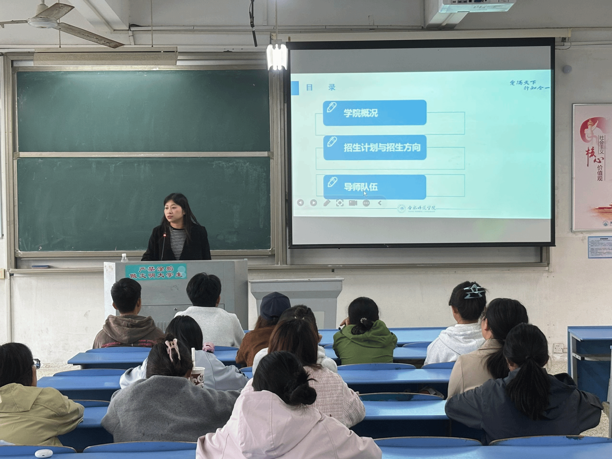 宣讲团首先介绍了学校办学底蕴与优势,并阐述太阳成城集团tyc234cc学科实力及培养条件,然后详细解析了学院2026年硕士研究生招生信息,包含招生方向和专业、考试科目和培养特色等。在随后的互动环节中,三位老师针对“跨专业报考限制”“复试侧重”等问题逐一解答,结合学院竞赛与科研成果,鼓励同学们早定目标、科学备考。